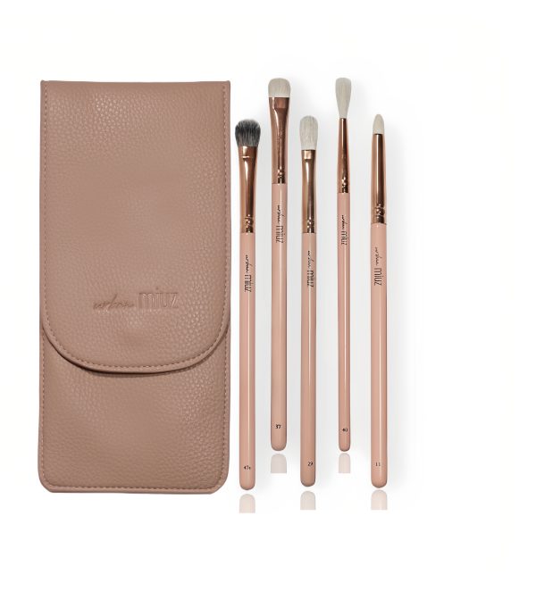 Essentials Eye Brush Set – 5 pensule esențiale pentru machiajul ochilor, plate și stufoase, ideale atât pentru aplicare, cât și pentru estompare, în texturi cremoase sau uscate.