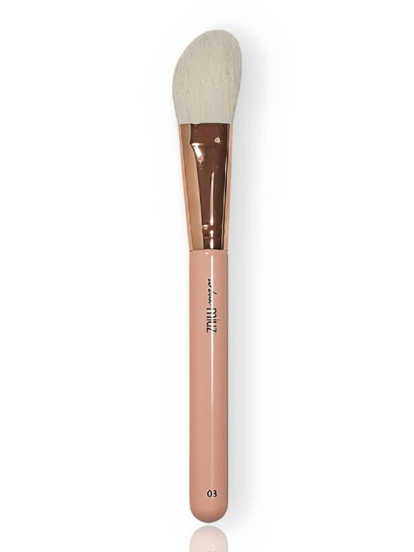 Pensula 03 are o formă plată și teșită, special concepută pentru conturarea precisă a feței. Este ideală pentru sculptarea pomeților, aplică produsul uniform și ajută la estomparea perfectă a liniilor de contur, fără urme dure sau pete.